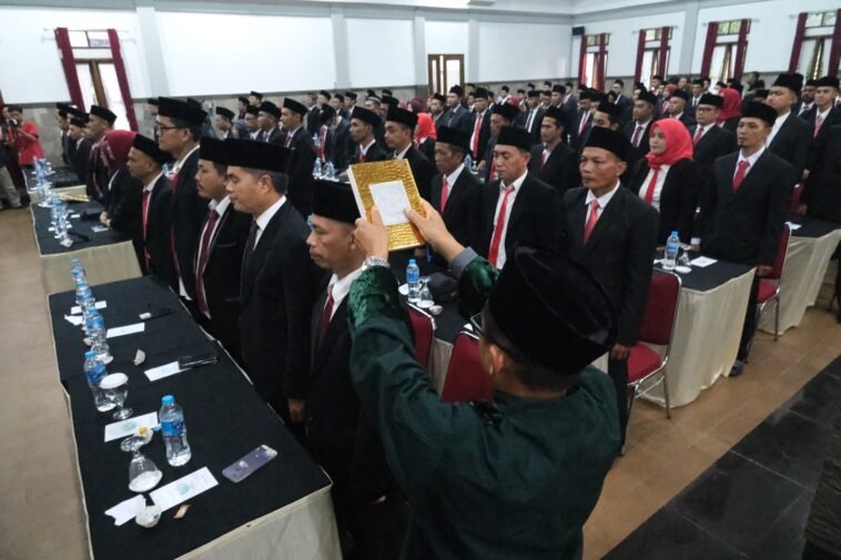 “Ada sekitar 71 orang yang memenuhi syarat (MS) dan 55 orang tidak memenuhi syarat (TMS). Untuk mengisi kekosongan, kami membuka rekrutmen di beberapa kecamatan dengan jumlah 55 orang, yang hasilnya dilantik hari ini,” jelas Ahmad.