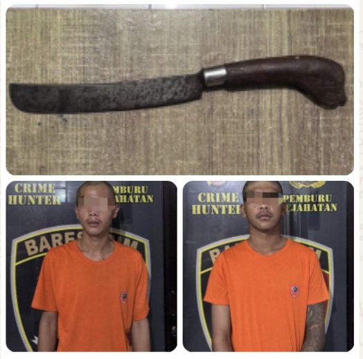 Polisi juga mengamankan barang bukti berupa sebilah golok bergagang kayu dengan panjang sekitar 32 cm yang diduga digunakan dalam aksi tersebut.