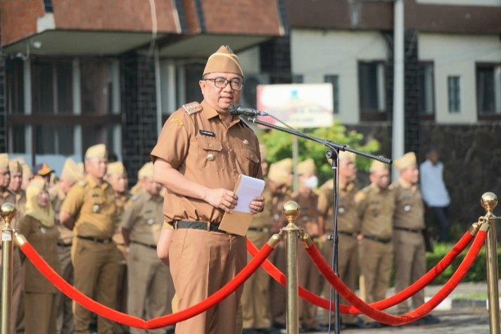 GARUTEXPO – Bupati Garut, Abdusy Syakur Amin, memimpin Apel Gabungan Perdana di lingkungan Pemerintah Kabupaten (Pemkab) Garut, yang berlangsung di Lapangan Sekretariat Daerah (Setda) Kabupaten Garut, Jalan Pembangunan, Kecamatan Tarogong Kidul, Kabupaten Garut, Senin (3/3/2025).