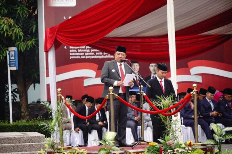 Foto: Bupati Syakur saat memimpin Upacara Peringatan Hari Lahir Pancasila Tingkat Kabupaten Garut Tahun 2025, yang digelar di Lapangan Sekretariat Daerah (Setda) Pemkab Garut, Kecamatan Tarogong Kidul, Senin (2/6/2025).