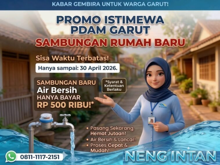 Garutexpo.com – Kabar menggembirakan datang bagi masyarakat Kabupaten Garut. Program promo sambungan rumah baru dari PDAM Garut kini tengah berlangsung dan menarik perhatian warga karena menawarkan biaya pemasangan yang sangat terjangkau.
