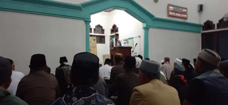 GARUTEXPO – Dai Kamtibmas Polres Garut, Aipda Umar, memberikan ceramah dalam kegiatan Shubuh Akbar di Masjid Besar Pakenjeng, Desa Jatiwangi, Kecamatan Pakenjeng, Kabupaten Garut, Minggu, 7 Juli 2024.