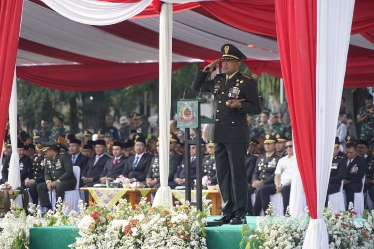 GARUTEXPO – Komandan Korem 062/Tn, Kolonel Arh Rudi Ragil, SP, S.Sos., M.Si., memimpin upacara peringatan Hari Ulang Tahun ke-79 Tentara Nasional Indonesia (TNI) di Alun-Alun Garut, Sabtu (05/10/2024). Upacara yang berlangsung khidmat ini mengusung tema “TNI Modern Bersama Rakyat Siap Mengawal Suksesi Kepemimpinan Nasional Untuk Indonesia Maju.”