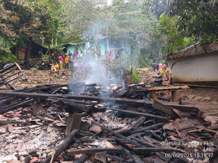 GARUTEXPO – Kebakaran hebat melanda sebuah rumah panggung berukuran 5×7 meter di Kampung Cigebang RT 03 RW 11, Desa Karangsari, Kecamatan Pakenjeng, Kabupaten Garut, Selasa (6/5/2025) sekitar pukul 10.30 WIB. Rumah tersebut diketahui milik Iis (54), warga setempat yang saat kejadian sedang bekerja di kebun.