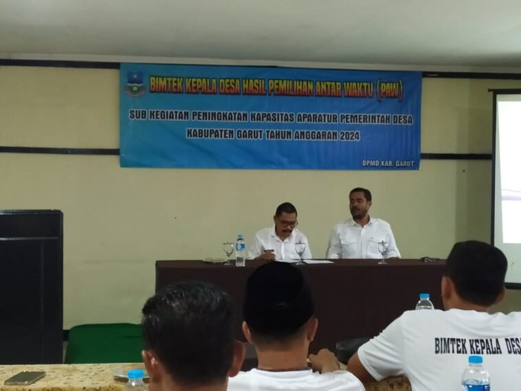 GARUTEXPO– Dinas Pemberdayaan Masyarakat dan Desa (DPMD) Kabupaten Garut melaksanakan Bimbingan Teknis (Bimtek) selama dua hari bagi Kepala Desa hasil Pemilihan Antar Waktu (PAW). Acara penutupan, yang berlangsung di Hotel Augusta, Jalan Raya Cipanas, Kecamatan Tarogong Kaler, ditutup oleh Kepala DPMD Garut, Wawan Nurdin, Rabu, 31 Januari 2024.