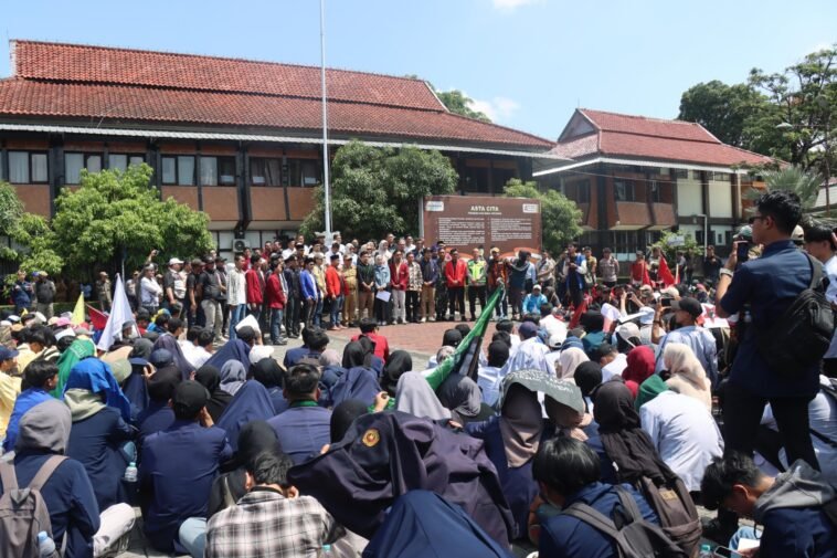 Ratusan mahasiswa dan warga yang tergabung dalam Aliansi Mahasiswa Bersama Masyarakat Garut Menggugat turun ke jalan, menyuarakan berbagai tuntutan terhadap pemerintah daerah. Mereka berkumpul sejak pukul 10.00 WIB di Bunderan Simpang Lima, lalu bergerak menuju Kantor Bupati dan DPRD Garut. Suara orasi, teriakan tuntutan, dan dentuman pengeras suara mewarnai langit Garut hari itu.