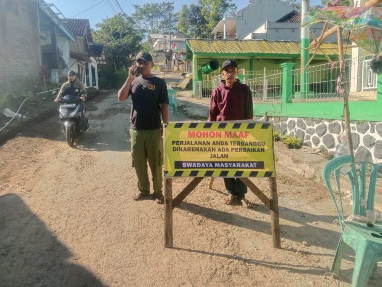 Pantauan di lokasi menunjukkan aktivitas perbaikan tengah berlangsung. Terlihat papan bertuliskan: “Mohon maaf perjalanan Anda terganggu dikarenakan ada perbaikan jalan.” Yang menarik, tidak ada satu rupiah pun dana dari APBD maupun kelurahan yang digunakan. Semua murni hasil inisiatif dan iuran masyarakat.