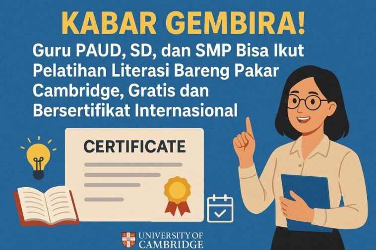 Menariknya, pelatihan ini tidak sekadar seminar biasa. Guru-guru terpilih akan mendapatkan kesempatan mengikuti beasiswa Microcredential Literacy selama enam hari penuh, dibimbing langsung oleh pakar literasi dari Cambridge University, United Kingdom.
