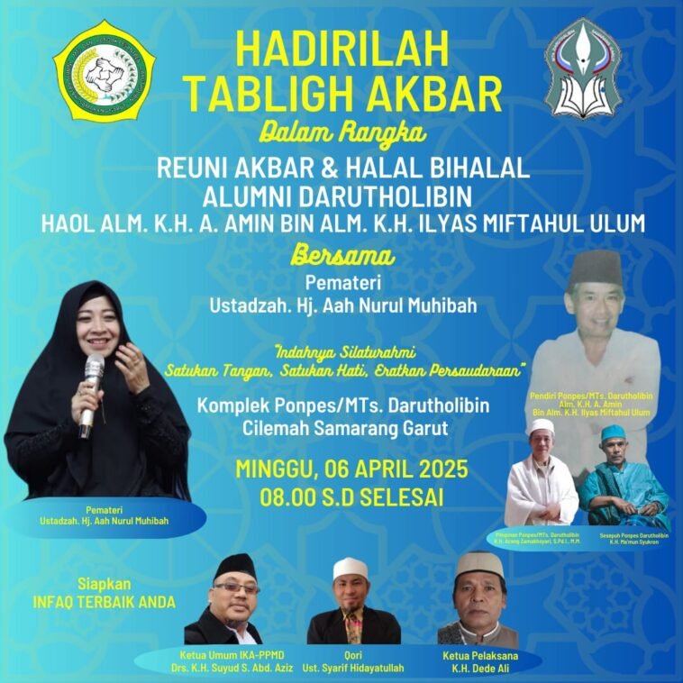 GARUTEXPO — Pimpinan Pondok Pesantren dan MTs Darutholibin Cilemah, Kecamatan Samarang, Kabupaten Garut, KH Aceng Zamaksyari, S.Pd.I., MM mengajak seluruh alumni untuk hadir dalam kegiatan Tabligh Akbar sekaligus Reuni Akbar dan Halal Bihalal Alumni Darutholibin.