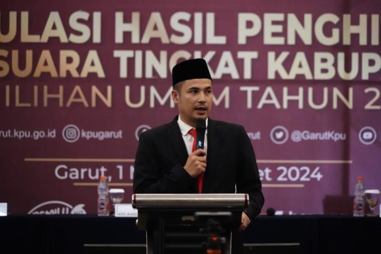 GARUTEXPO – Komisi Pemilihan Umum (KPU) Kabupaten Garut menggelar Rapat Pleno Terbuka Rekapitulasi Hasil Penghitungan Perolehan Suara tingkat Kabupaten Garut dalam Pemilihan Umum (Pemilu) Tahun 2024. Acara ini berlangsung di Ballroom Hotel Harmoni, Jalan Cipanas Baru, Kecamatan Kabupaten Garut, pada Jum’at (01/03/2024).