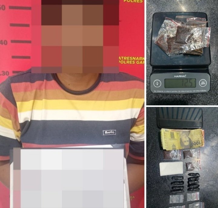 Kapolres Garut AKBP Rohman Yonky Dilatha, S.I.K, M.Si, melalui Kasat Reserse Narkoba AKP Juntar Hutasoit. SH,MH., menyatakan bahwa pelaku ditangkap di Kampung Sindanghela Desa Sukamentri Kecamatan Garut Kota Kabupaten Garut.