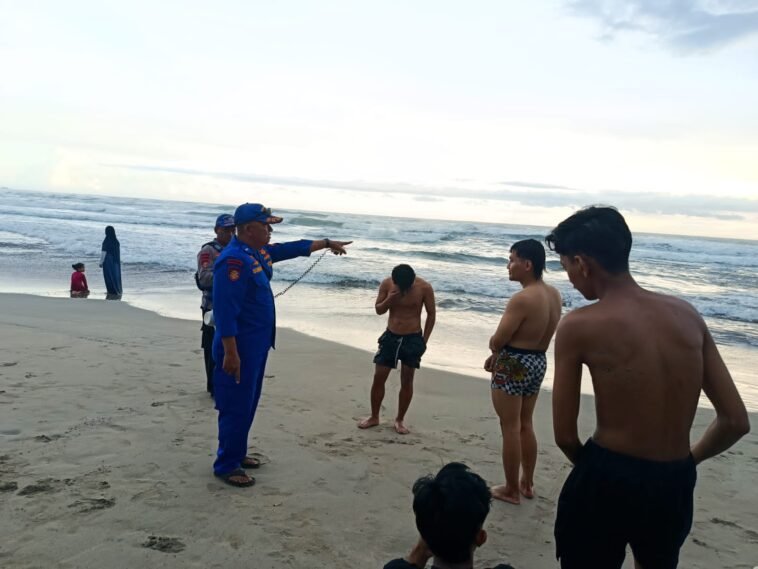 “Kami mengimbau kepada para wisatawan, khususnya yang datang dari luar daerah, agar selalu berhati-hati dan tidak berenang terlalu ke tengah demi menghindari hal-hal yang tidak diinginkan,” ujar Aipda Sumar saat melakukan patroli di pesisir Pantai Karang Papak, Kamis, 27 Maret, 2026.