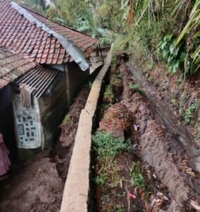 “Selain kerusakan pada TPT, ada dua unit rumah yang terancam apabila terjadi longsor susulan,” ujar Camat Pasirwangi, Bambang Rudijanto.
