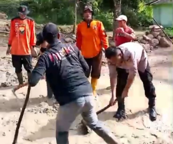 Menurut AKP Yuslianto, warga bersama unsur pemerintah setempat telah bergotong-royong melakukan pembersihan material longsor untuk membuka kembali akses jalan dan memulihkan fungsi saluran irigasi.