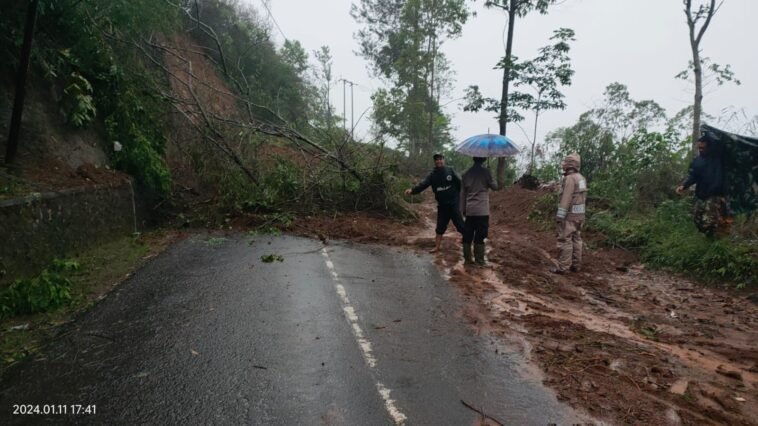 GARUTEXPOKamis sore 11 Januari 2024, terjadi bencana longsor di Jalan Raya Bungbulang – Garut, khususnya di Kampung Cijotang, Desa Pananjung, Kecamatan Pamulihan. Camat Pamulihan, Robiul Awaludin, melaporkan bahwa akses transportasi terganggu karena material longsor menutupi jalan.