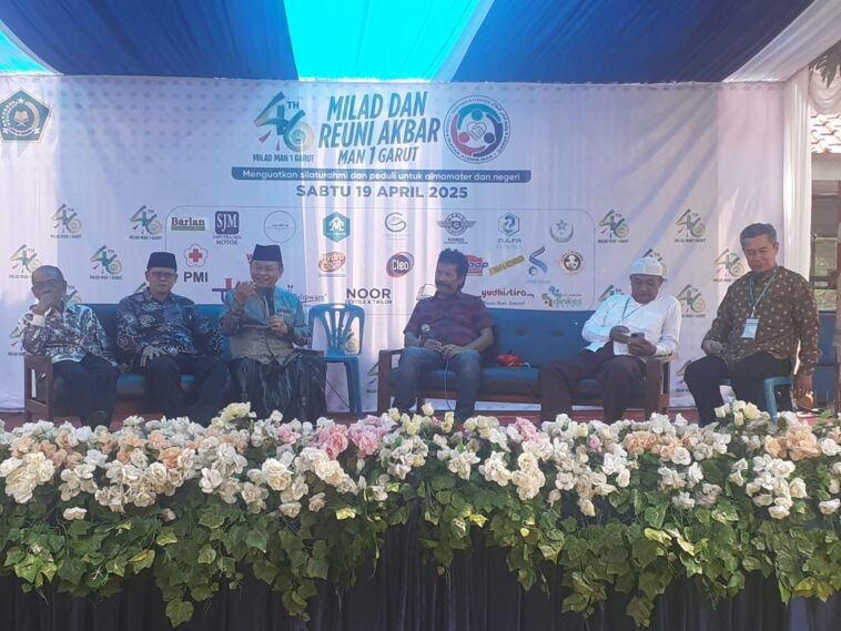 GARUTEXPO — MAN 1 Garut menggelar perayaan Milad dan Reuni Akbar yang berlangsung meriah di kompleks Madrasah Jl. Jend Ahmad Yani Koropeak Garut, Sabtu, 19 April 2025. Kegiatan ini mengusung tema “Menguatkan Silaturahmi dan Peduli untuk Almamater dan Negeri”, dan menjadi ajang penting bagi para alumni untuk mempererat tali persaudaraan serta menunjukkan kepedulian sosial.