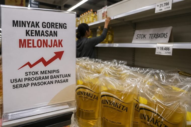 Garutexpo.com – Harga minyak goreng kemasan di pasaran mengalami lonjakan signifikan dalam beberapa hari terakhir. Kondisi ini dipicu oleh kebijakan pemerintah yang menghentikan sementara distribusi program bantuan pangan minyak goreng “MinyaKita” setelah ditemukan adanya penyerapan pasokan dalam jumlah besar dari pasar tradisional, Kamis (23/04/2026).