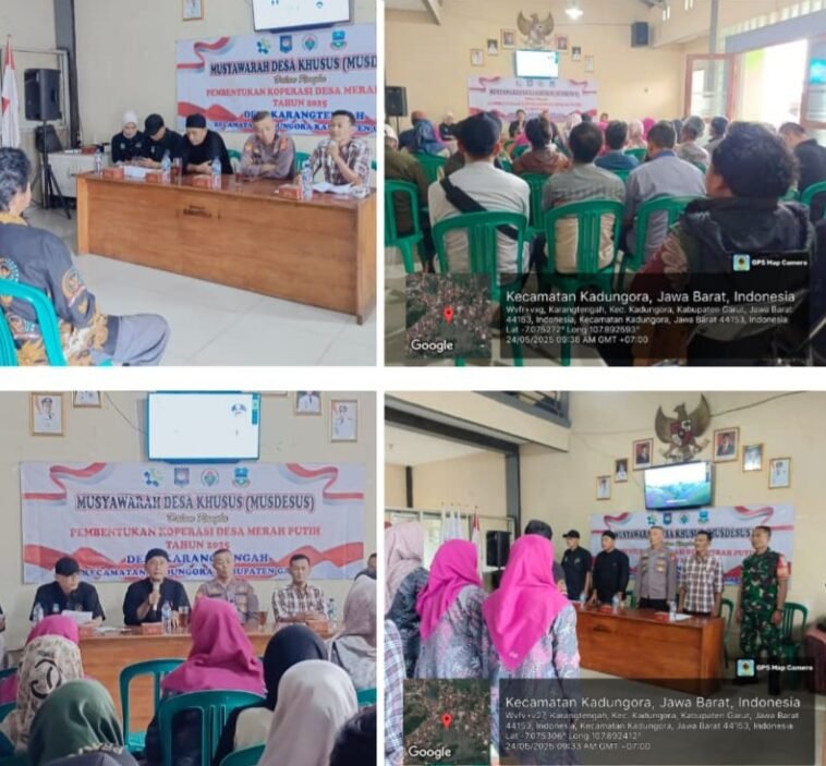 GARUTEXPO – Pemerintah Desa Karangtengah, Kecamatan Kadungora, Kabupaten Garut, menggelar Musyawarah Desa Khusus (Musdesus) Sabtu (24/5/2025) pukul 14.00 WIB di Aula Kantor Desa setempat. Musdesus ini digelar dalam rangka pembentukan Koperasi Desa Merah Putih, sebagaimana amanat dari Surat Edaran Menteri Desa PDTT Nomor 6 Tahun 2025 tentang percepatan pembentukan Koperasi Merah Putih di tingkat desa.