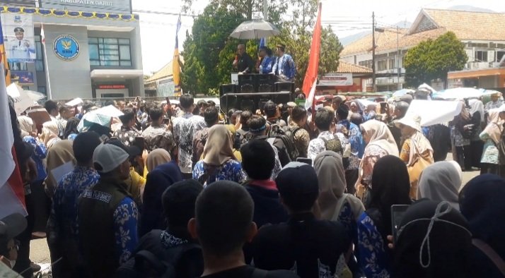 GARUTEXPO– Sekretaris Daerah (Sekda) Kabupaten Garut, Nurdin Yana, merespons serius demonstrasi para guru honorer Kabupaten Garut yang berlangsung pada Kamis pagi, 22 Februari 2024, di jalan kantor DPRD dan pemda Garut. Setelah berdialog dengan perwakilan Forum Aliansi Guru dan Karyawan (FAGAR), Sekda Garut menyampaikan solusi konkret terkait tuntutan para demonstran.
