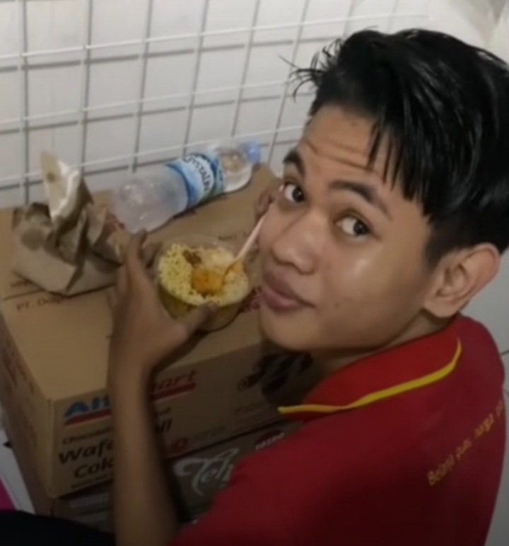 Menu sederhana yang terpampang di meja kerjanya terdiri dari air putih, kertas bungkus yang diduga berisi nasi, dan mie instan. Pegawai tersebut mengungkapkan bahwa ia terpaksa menggabungkan mie instan dengan nasi putih untuk memuaskan lapar, terutama saat istirahat kerja di minimarket.