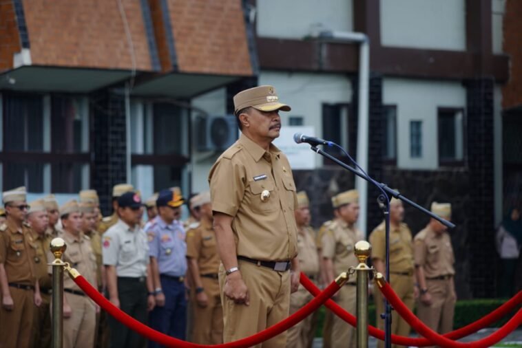 GARUTEXPO – Penjabat (Pj) Bupati Garut, Barnas Adjidin, memimpin apel gabungan di Lapangan Sekretariat Daerah pada Senin (5/2/2024). Dalam sambutannya, ia mengajak Aparatur Sipil Negara (ASN) untuk bersinergi dalam menjalankan roda pemerintahan, menegaskan pentingnya menjaga program kegiatan tanpa cela.