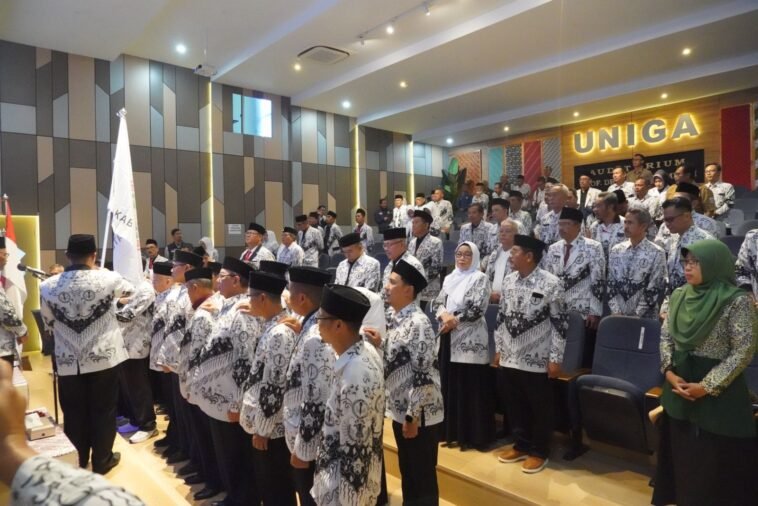 GARUTEXPO – Pengurus Persatuan Guru Republik Indonesia (PGRI) Kabupaten Garut Masa Bakti XXIII Tahun 2025-2030 resmi dilantik dalam sebuah acara di Auditorium Kampus IV Universitas Garut (Uniga), Selasa (18/2/2025). Acara pelantikan ini dihadiri oleh Sekretaris Daerah (Sekda) Kabupaten Garut, Nurdin Yana, Ketua PGRI Provinsi Jawa Barat, Akhmad Juhana, serta perwakilan Forum Koordinasi Pimpinan Daerah (Forkopimda) Kabupaten Garut.
