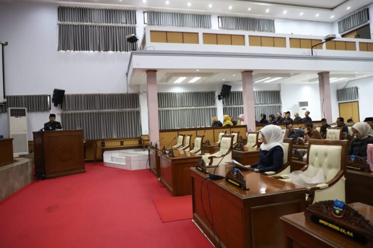 GARUTEXPO – Penjabat (Pj) Bupati Garut, Barnas Adjidin, hadir dalam Rapat Paripurna Dewan Perwakilan Rakyat Daerah (DPRD) Kabupaten Garut yang membahas Perubahan Anggaran Pendapatan dan Belanja Daerah (APBD) 2024. Acara tersebut berlangsung di Ruang Rapat Paripurna DPRD Kabupaten Garut, Jalan Patriot, Kecamatan Tarogong Kidul, Kamis (26/9/2024).