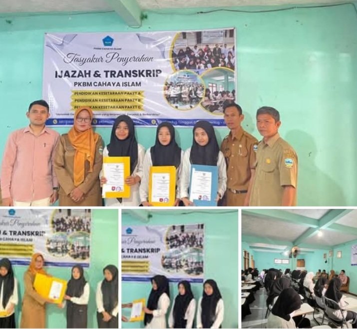 Garutexpo.com — Pusat Kegiatan Belajar Masyarakat (PKBM) Cahaya Islam berhasil menyelenggarakan acara tasyakur pelepasan sekaligus penyerahan ijazah dan transkrip nilai bagi siswa Paket A, B, dan C pada Senin, 7 Juli 2025. Bertempat di Gedung PKBM Cahaya Islam, Kecamatan Cigedug Kabupaten Garut, acara ini mengusung tema “Bergerak Bersama Lanjutkan Merdeka Belajar Menuju Lulusan yang Berdaya, Mandiri, dan Berkarakter.”