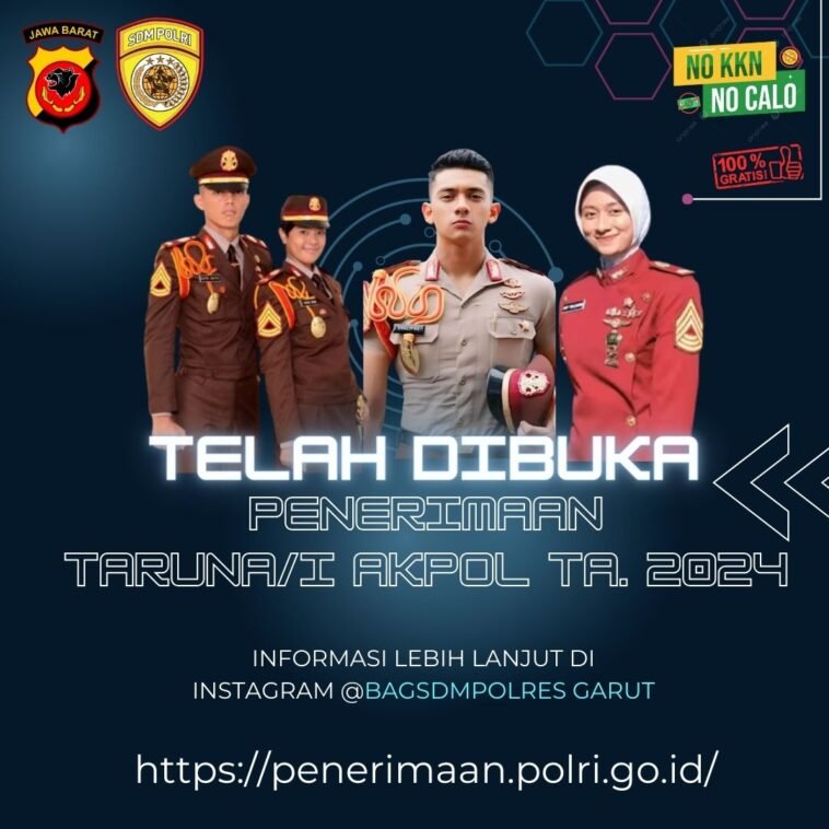 GARUTEXPO – Penerimaan pendaftaran calon anggota Polri melalui jalur Taruna AKPOL (Akademi Kepolisian) telah resmi dibuka bagi masyarakat di wilayah Indonesia, termasuk di wilayah hukum Polres Garut, sesuai dengan pengumuman dari Mabes Polri tertanggal 26 Maret 2024.