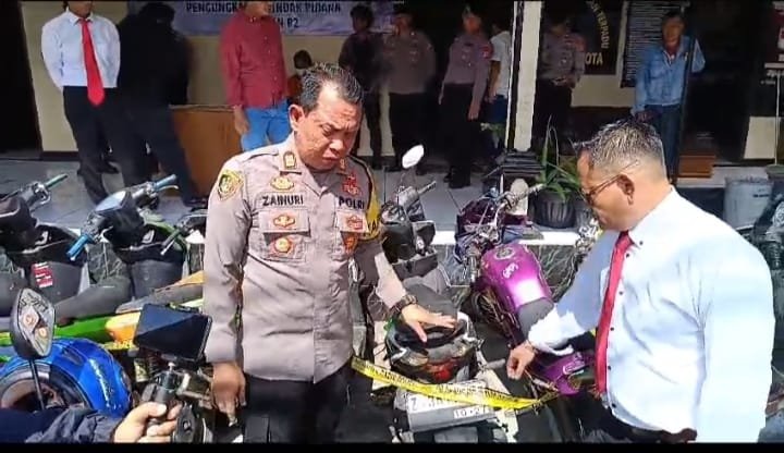 “Kedua pelaku, “HR” (33) dan “RK” (27), berhasil ditangkap, sementara satu pelaku lainnya, “A” (20), masih dalam pengejaran. Dari interogasi, para pelaku mengakui beberapa kasus pencurian sepeda motor, termasuk di halaman Masjid Kelurahan Sukamentri,” tandasnya.