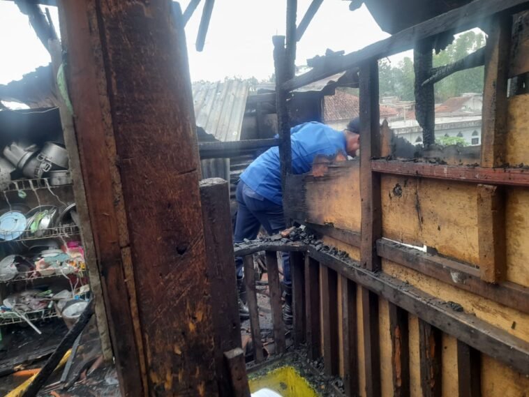 GARUTEXPO – Polsek Tarogong Kidul Polres Garut melakukan pemeriksaan di Tempat Kejadian Perkara (TKP) kebakaran rumah semi permanen di Kampung Pasirseah, Kelurahan Sukajaya, Kecamatan Tarogong Kidul, Kabupaten Garut, pada Jumat pagi (28/06/2024).
