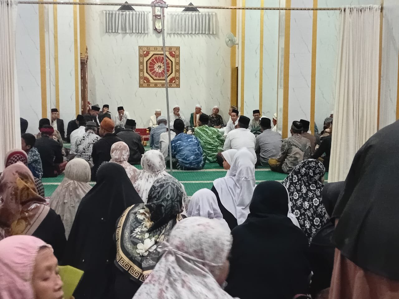 Foto: Suasana Peringatan Isra Mi’raj Nabi Muhammad SAW dan Haul 100 Hari Atas wafatnya Sesepuh Pondok Pesantren Nurul Falah Bongkor, KH Ade Ma’ruf di Masjid Jami Nurul Falah Bongkor Desa Cintarakyat, Kecamatan Samarang, Kabupaten Garut, Rabu malam, 24 Desember 2025.