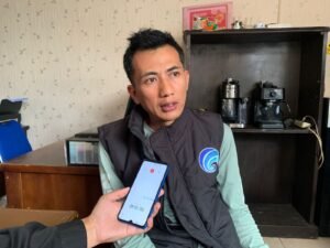 Yogi Gunawan saat di wawancarai awak media sesuai mengikuti CAT Simulasi PPPK di gedung Public Information Center (PIC) Diskominfo Garut, Kamis, 21 November 2024.