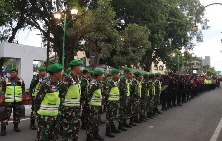 GARUTEXPO – Ratusan personel gabungan dari TNI-Polri, Dinas Perhubungan (Dishub), dan Satuan Polisi Pamong Praja (Satpol PP) dikerahkan oleh Polres Garut untuk mengamankan kegiatan Nonton Bareng (Nobar) pertandingan antara Persib Bandung melawan Barito Putera yang digelar di wilayah Kabupaten Garut, Jumat (8/5/2025).