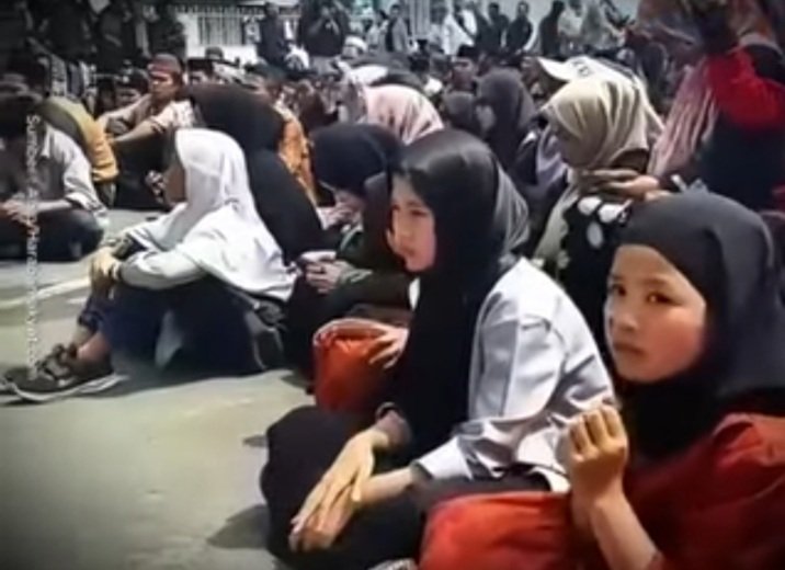 “Kami meminta keadilan. Harun hanya menarik kerah baju korban, tidak ada bukti penganiayaan yang sah,” ujar salah satu orator aksi. Meski hujan lebat mengguyur, massa tetap menggelar doa bersama di lokasi.