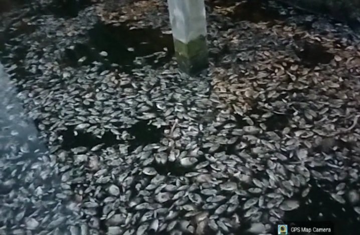 Iwan, salah seorang pekerja yang sehari-hari mengelola kolam ikan di wilayah tersebut, mengatakan bahwa ribuan ikan dari berbagai jenis seperti bawal, nila, dan lele tiba-tiba mati dalam waktu bersamaan.