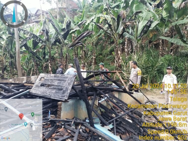 GARUTEXPO – Sebuah rumah semi permanen di Kampung Talaga Gede, Rt. 03 Rw. 04, Desa Talaga, Kecamatan Pasirwangi, Kabupaten Garut, hangus terbakar, Sabtu, 20 Juli 2024. Polsek Pasirwangi, Polres Garut, segera melakukan pengecekan di lokasi kejadian.