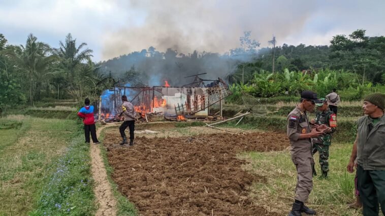 GARUTEXPO – Sebuah rumah milik Pudin (60) warga Kampung Cintabakti, Desa Jayabakti, Kecamatan Banjarwangi, Kabupaten Garut, mengalami kebakaran hebat pada Kamis pagi, 01 Juli 2024. Kebakaran ini mengakibatkan rumah tersebut hangus terbakar, dan dua kepala keluarga (KK) harus dievakuasi. Beruntung, tidak ada korban jiwa dalam peristiwa ini.