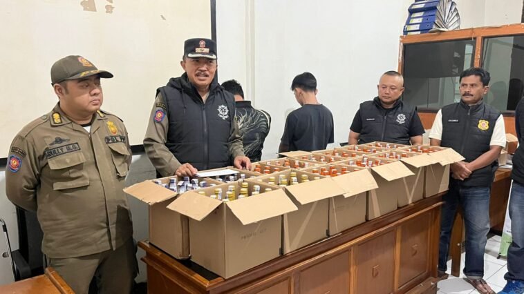 Garutexpo.com – Satuan Polisi Pamong Praja (Satpol PP) Kabupaten Garut berhasil mengamankan 432 botol minuman keras (miras) berbagai merek yang siap diedarkan di wilayah Kecamatan Garut Kota, Selasa malam (12/8/2025). Penindakan ini disaksikan langsung oleh Bupati Garut, Abdusy Syakur Amin.