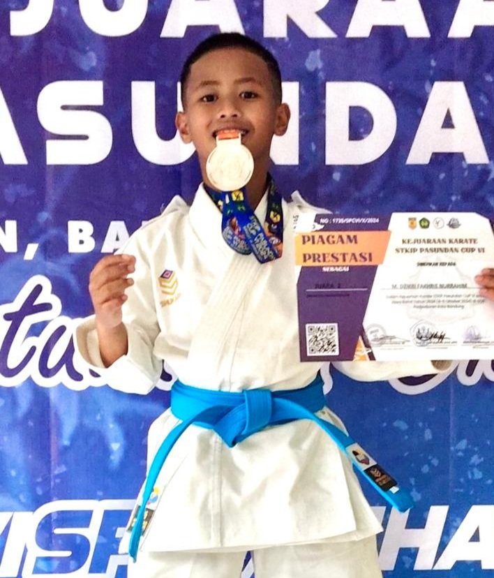 GARUTEXPO – M.Dzkri Fahrie Nurrahim, siswa kelas IV SDIT Muhammadiyah Simpang Bayongbong, berhasil meraih satu medali emas dan satu perak dalam Kejuaraan Karate STKIP Pasundan Cup VI yang berlangsung di GOR Pajajaran Sirkuit 3, Bandung, pada tanggal 4 hingga 6 Oktober 2024.