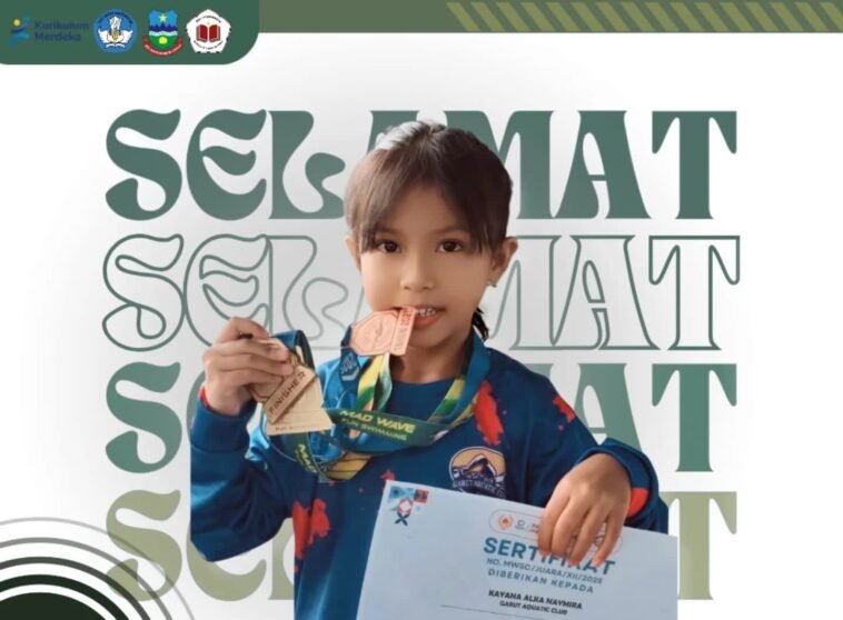 Garutexpo.com – Prestasi membanggakan ditorehkan oleh Kayana Alka Naymira, siswi kelas 1 SDN 3 Pasawahan, Kecamatan Tarogong Kaler. Atlet cilik dari Klub Renang Garut Aquatic Club (GAC) ini berhasil meraih Juara 3 kategori Girls 6 Under nomor 25 Meter Breaststroke dalam ajang kejuaraan renang yang diikuti peserta dari berbagai daerah.