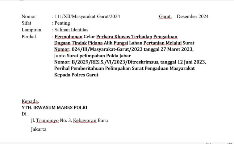 GARUTEXPO – Kasus dugaan tindak pidana alih fungsi lahan oleh PT. Pratama Abadi Industri yang berlokasi di Desa Cijolang, Kecamatan BL. Limbangan, Kabupaten Garut, menjadi sorotan publik. Aparat Polres Garut didesak untuk segera mengungkap dugaan keterlibatan oknum di Dinas Pekerjaan Umum dan Penataan Ruang (PUPR) Kabupaten Garut, yang diduga menerbitkan izin tidak sesuai rekomendasi Dinas Pertanian.