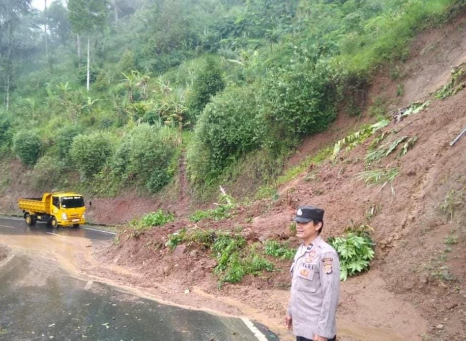 Hujan Deras Picu Longsor, Jalan Caringin-Bungbulang Tertutup Material Tanah