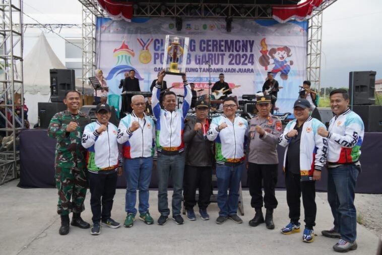 GARUTEXPO – Pekan Olahraga Kabupaten (PORKAB) Garut Tahun 2024 resmi ditutup oleh Sekretaris Daerah Kabupaten Garut, Nurdin Yana, pada Minggu sore di SOR RAA Adiwijaya, Kecamatan Tarogong Kidul. Kecamatan Tarogong Kidul berhasil mempertahankan gelar juara umum untuk ketiga kalinya secara berturut-turut.