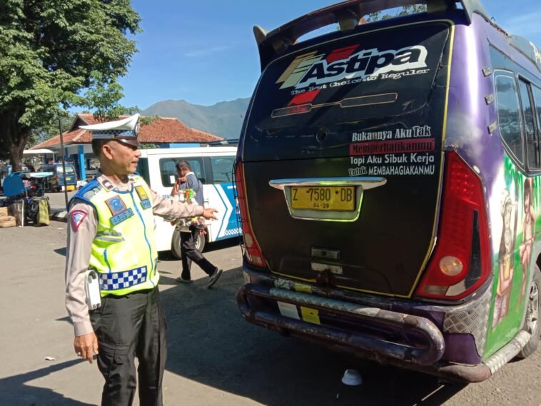 GARUTEXPO– Dalam upaya menekan angka fatalitas kecelakaan, Satuan Lalu Lintas Polres Garut secara rutin melakukan pemeriksaan kendaraan angkutan umum di Terminal Guntur Kabupaten Garut, Selasa, 19 Maret 2024. Kegiatan ini dilakukan untuk memastikan keselamatan dan kenyamanan para penumpang.