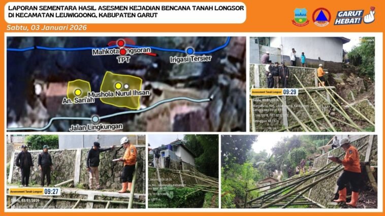 Sebagai langkah awal, BPBD Kabupaten Garut bersama Forkopimcam Kecamatan Leuwigoong, unsur pemerintah desa, Polri, dan tokoh masyarakat telah melaksanakan koordinasi dan assessment lanjutan pada Sabtu, 3 Januari 2026 mulai pukul 08.00 WIB. Warga sekitar juga telah diberikan imbauan untuk meningkatkan kewaspadaan, terutama saat hujan dengan intensitas sedang hingga tinggi.