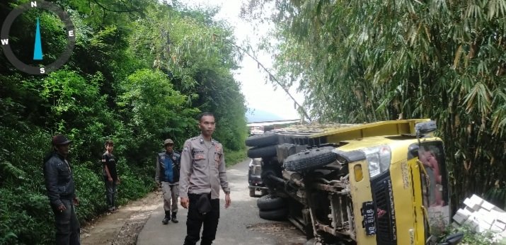 Truk yang mengangkut muatan berat berupa semen, hebel, besi, dan keramik itu mengalami kerusakan parah, dengan kerugian materiil ditaksir mencapai Rp 5 juta. Beruntung, sopir dan penumpang selamat tanpa luka. Namun, muatan yang berserakan di jalan sempat menghambat arus lalu lintas.