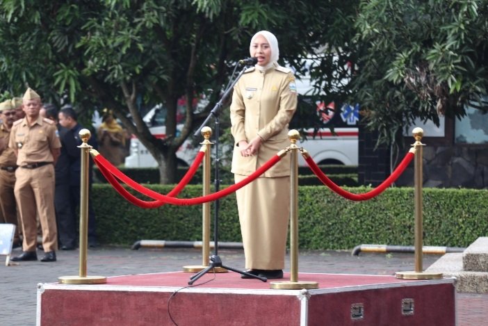 Wabup Garut, Putri Karlina saat Apel Gabungan di Lapangan Sekretariat Daerah (Setda) Kabupaten Garut, Jalan Pembangunan, Kecamatan Tarogong Kidul, Senin (30/6/2025).
