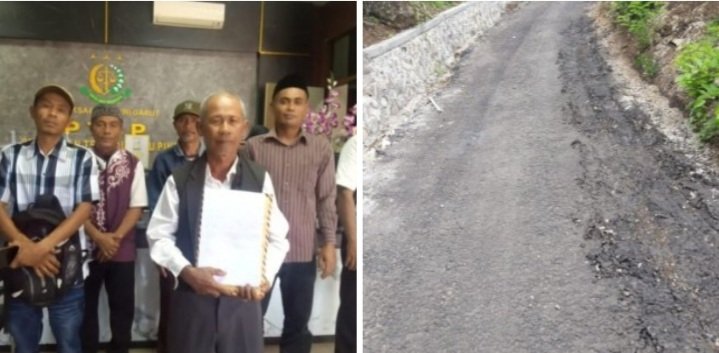 GARUTEXPO– Warga Desa Cigaronggong, Kecamatan Cibalong, Kabupaten Garut, melakukan laporan terhadap pemerintahan desa terkait proyek pembangunan jalan desa dalam Program BANKEUDES Tahun Anggaran 2023 ke Kejaksaan Negeri Garut pada tanggal 21 Maret.